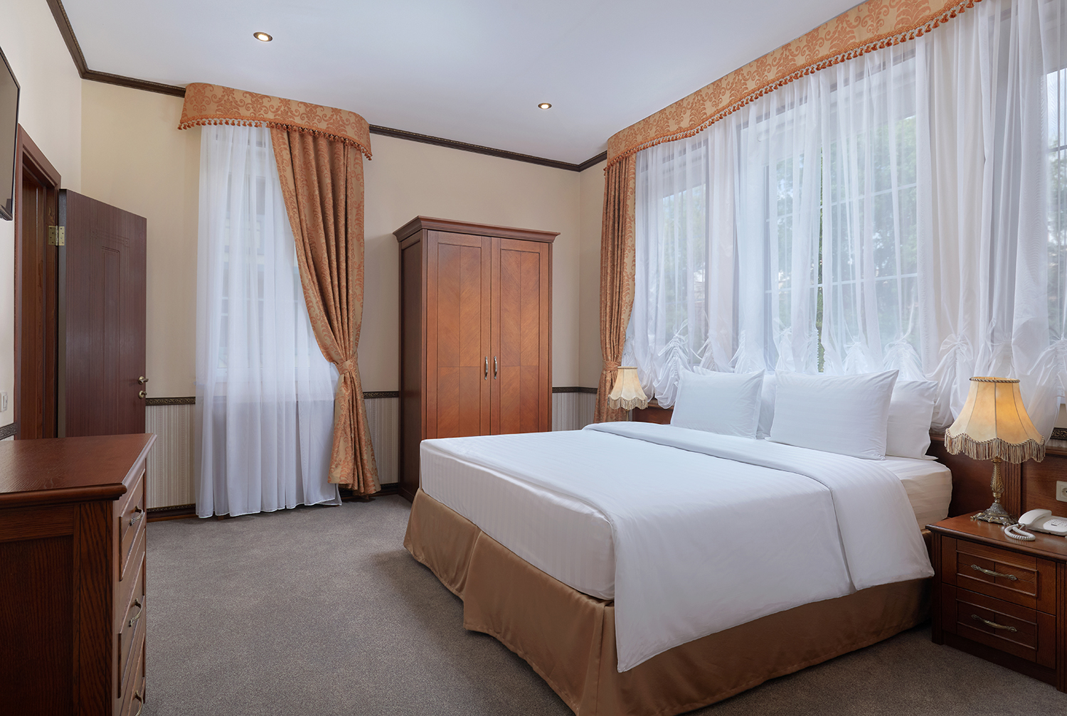 Отель предлагает разнообразие номеров, включая как стандартные варианты, так и роскошные люксы и апартаменты. Такой широкий выбор позволяет каждому гостю подобрать идеальный вариант для отдыха в соответствии с личными предпочтениями и финансовыми возможностями. Интерьеры номеров оформлены с акцентом на комфорт и стиль, а также оборудованы современными удобствами, что обеспечивает приятное и расслабляющее пребывание.