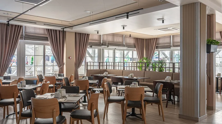 Для удобства питания гостей на территории комплекса предусмотрено множество отличных заведений. В ресторанах «Нормандия» и «Сан-Мишель» отдыхающие смогут насладиться изысканными блюдами и напитками. Также можно прекрасно провести время в лобби-баре и Pool bar, а разнообразие предложений дополняют три снек-бара и «Disco bar», где каждый найдет что-то по душе.