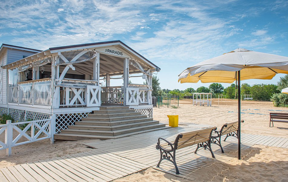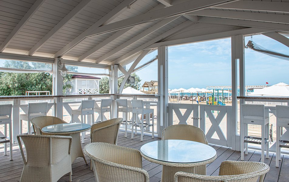 Под навесом бара гости найдут укрытие от палящих солнечных лучей, смогут расслабиться и отдохнуть, прежде чем снова погрузиться в воду или продолжить загорать. Этот снек-бар создает идеальные условия для комфортного отдыха на пляже, предлагая вкусные угощения и освежающие напитки в непосредственной близости от моря. Это пространство гарантирует, что ваш день на пляже станет еще более приятным и запоминающимся!